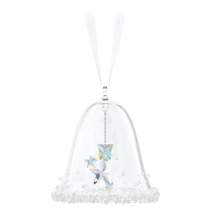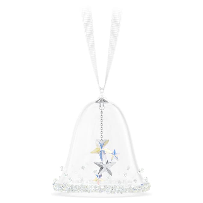 For the first time, Swarovski has crafted a miniature version of its traditional bell ornament. The immaculate glass design is covered with approximately 300 small crystals, while the inside contains a clapper of stars produced with 108 facets and the mesmerizing Aurora Borealis effect. The piece is suspended on a white grosgrain ribbon connected to a silver-tone metal cap, helping to create the perfect display of delicate beauty in your home. Decoration object. Not a toy. Not suitable for children under 15.