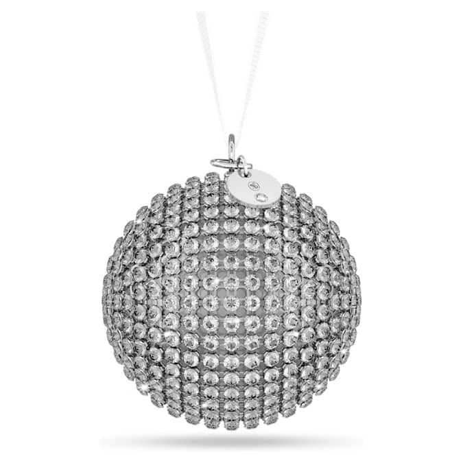 This glittering holiday ornament is designed to fill any space with endless reflections of light. The design is crafted with Swarovski’s radiant Crystal Mesh, featuring 680 individual crystals for a total of 1,156 facets. Suspended from a white grosgrain ribbon with a silver-tone metal tag, it can be hung anywhere in your home for a showcase of festive cheer. Decoration object. Not a toy. Not suitable for children under 15.
