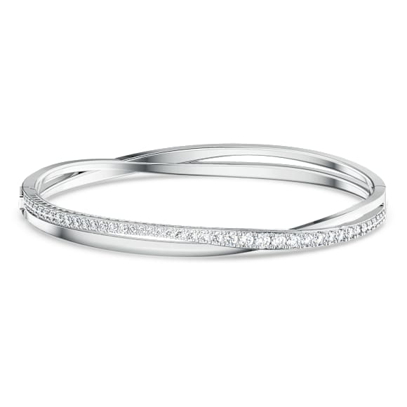 This beautiful bangle by Swarovski exhibits timeless, understated elegance in a modern interpretation of the spiral trend. A brilliant line of sparkling white stones follows the gently curving lines of the bangle, adding glittering radiance to the design. On-trend and refined, this bangle complements your everyday looks with a brilliant touch.