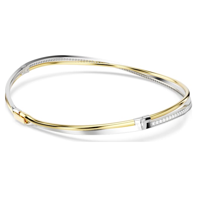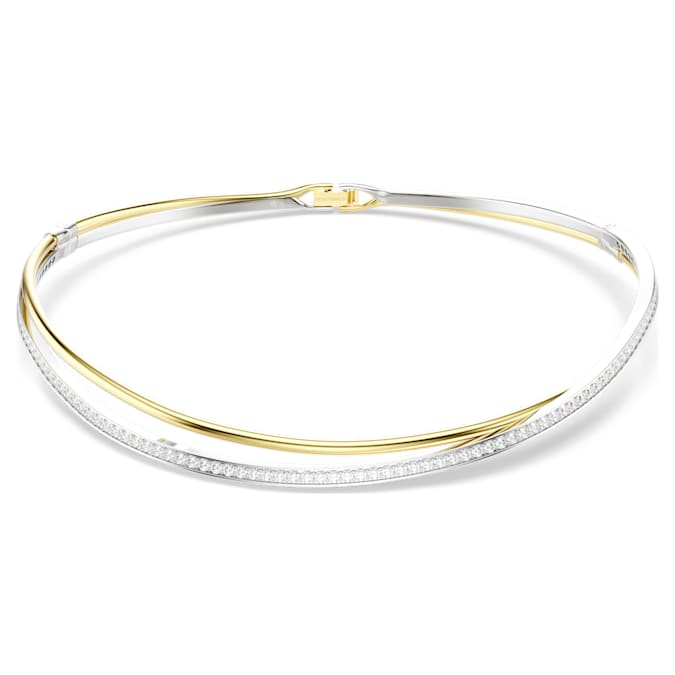 A double dose of luxury, this refined Swarovski necklace features two overlapping bands in contrasting colors. A gold-tone plated strand is interwoven with a rhodium plated strand, adorned with round-cut Swarovski Zirconia in a radiant channel setting. A mesmerizing fusion of mixed metals that pairs beautifully with a matching Hyperbola range.