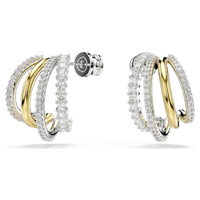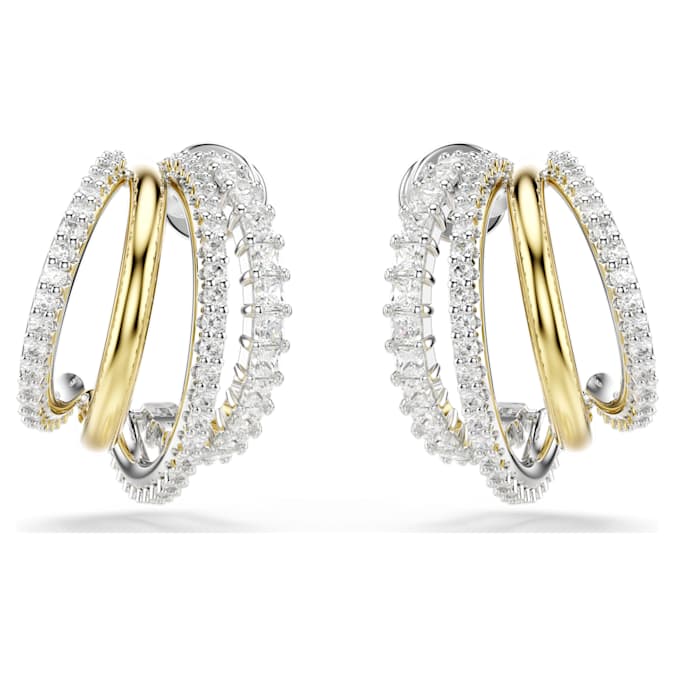 These intricately detailed Hyperbola earrings find beauty and harmony in contrast. On each side, the four mini hoops are presented in a variety of metal finishes, including gold-tone and rhodium plating, and feature round- and square-cut Swarovski Zirconia in a prong setting. Style with a matching bangle or necklace to dial up the drama.