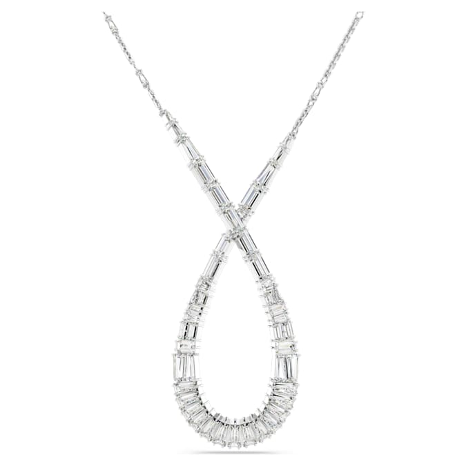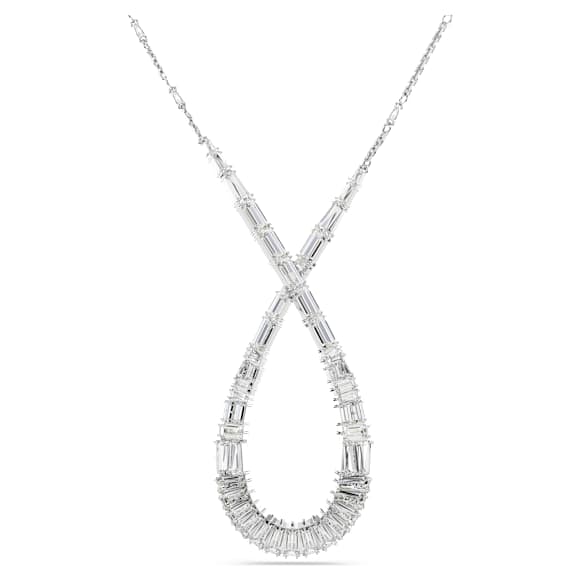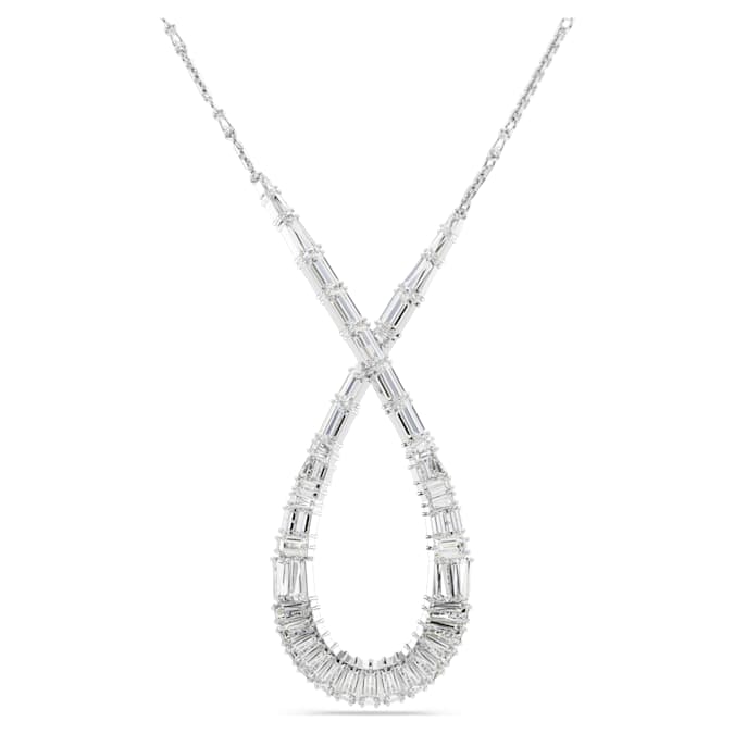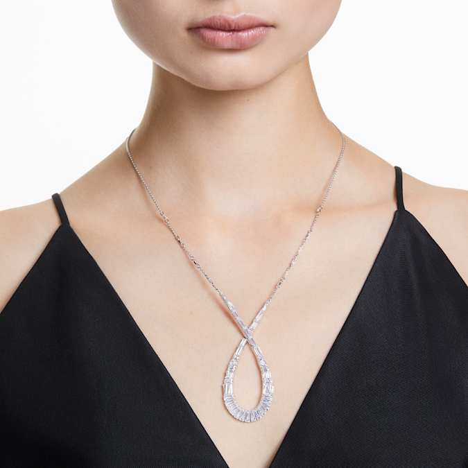 Crafted with exquisite artistry and savoir-faire, this Hyperbola Infinity pendant is an elegant vision of eternal beauty. The rhodium-plated jewelry features a graceful loop, which is scattered with Swarovski Zirconia in a variety of mixed cuts. Together, they produce a delicate gradient effect for a captivating tonal look. Make this statement piece the center of your style for the most sophisticated occasions.