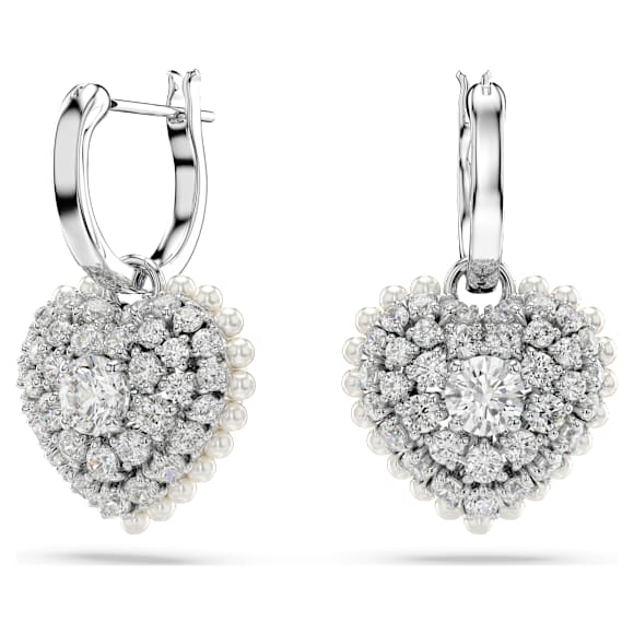 Bring a beautiful touch of love to your style with these expressive pierced earrings. Each rhodium-plated piece has been created with a heart-shaped cage design for maximum volume. To enhance the domed effect, they are adorned with round clear Swarovski Zirconia, set in place using the dazzling chatonnage technique. Pair them with a matching pendant for joyful sophistication.
