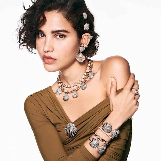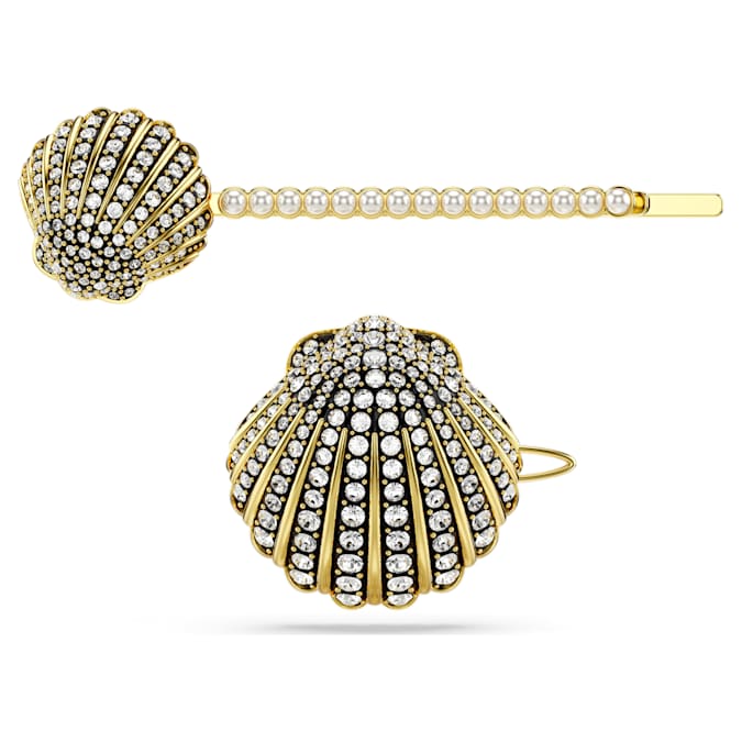 Idyllia hair pin Set (2), Shell, White, Mixed metal finish