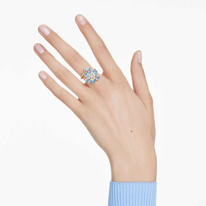 Take your nature-inspired style to the next level with this glittering motif ring. The gold-tone plated band spirals around the finger with a central flower crafted from blue and yellow crystals. The different shapes and shades ensure there is magic to be found in every detail. Combine this ring with a matching Idyllia pendant to achieve an all-over look of color and joy.