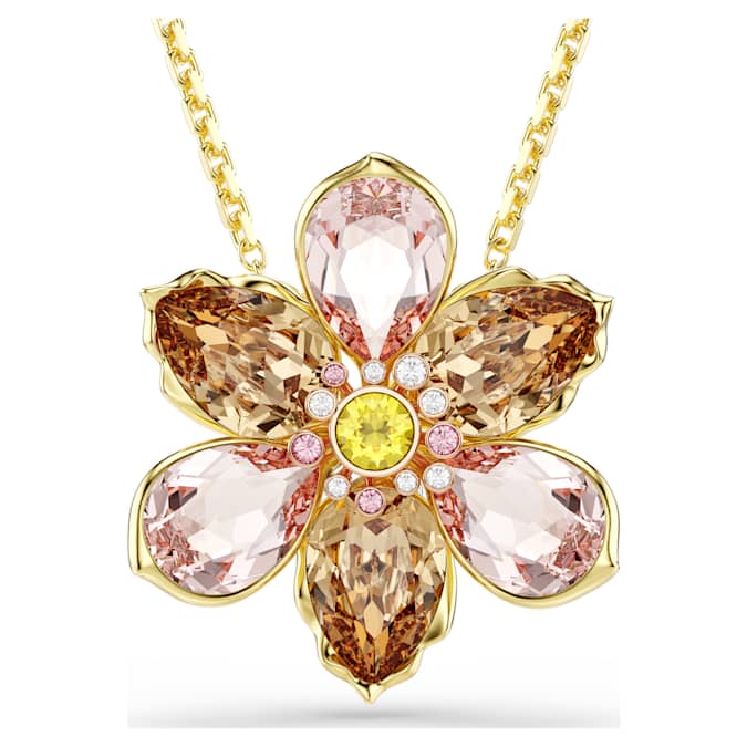 This beautiful Idyllia jewelry combines versatility with wondrous style. The gold-tone plated pendant displays a single flower, made of crystals in various cuts and soft colors, which can be removed from its adjustable chain to be worn as a stunning brooch. A wonderful gift for yourself or someone who adores nature.