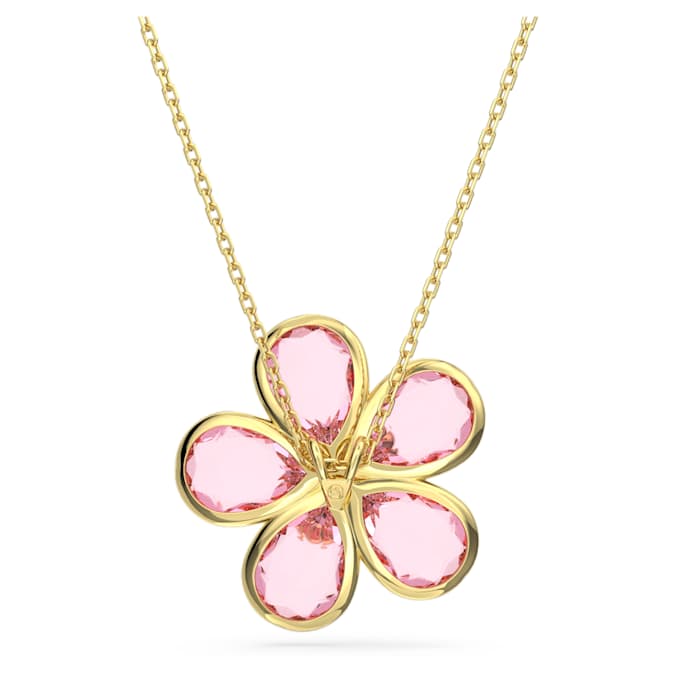 This wondrous Idyllia pendant becomes even more beautiful the closer you get. Crafted with a gold-tone plated setting, the pink design features five faceted petals artfully arranged around a central stone with a deeper hue. The pendant is on a sliding chain and can be worn as a statement piece within your style collection.