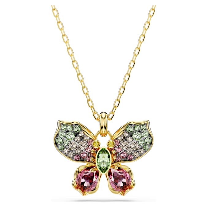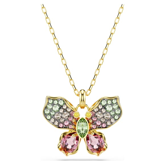 Let your style take flight with this delicate butterfly pendant. The magical design is worn on a gold-tone plated chain and features a central motif that is decorated in crystals of varying shapes and colors. The eye-catching creation is emblematic of the wonder to be found in the beautiful Idyllia garden and delivers a meaningful piece of jewelry that is joyful as well as luxurious.