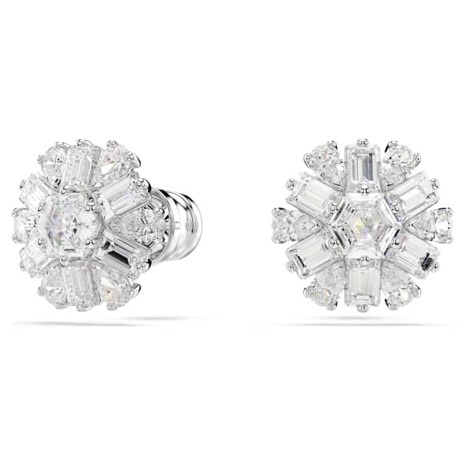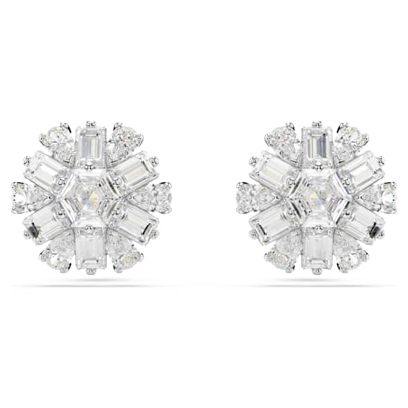 Discover the exceptional artistry of these snowflake-inspired stud earrings. Each rhodium plated piece is frozen in place with an array of clear prong-set Swarovski Zirconia echoing the cool glow of ice in the twilight. Pair with a matching pendant or bracelet to maximize the effect.