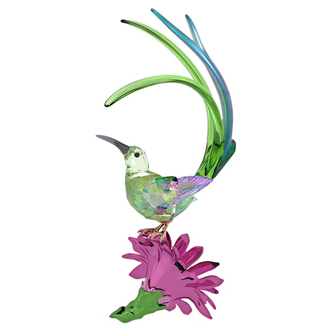 With its long tail reaching up to the sky, this radiant sugarbird is a breathtaking sight to behold. The nature-inspired scene has been created with 554 precision-cut facets, and showcases the exotic bird sitting atop a pink cactus flower. The creativity is further brought to life with glossy metal accents and a captivating Shimmer effect. Place it anywhere in your home as a joyful centerpiece. Decoration object. Not a toy. Not suitable for children under 15.