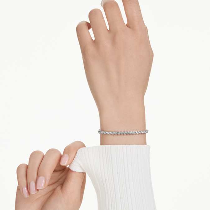 A classic Imber Emily Tennis bracelet with a glow that speaks volumes. This delicate strand of bezel-set black crystals on a rhodium plated Imber Emily Tennis bracelet is elegant and minimalistic, while still making a bold statement around the wrist. The sleek design features a secure foldover clasp closure and comes with an extender. Wear it to accentuate your style at any time of day or night.
