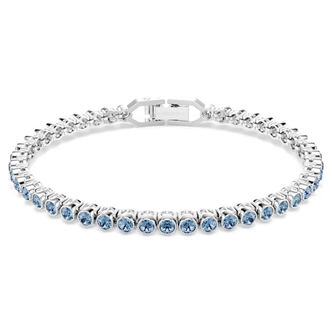 A classic Imber Emily Tennis bracelet with a glow that speaks volumes. This delicate strand of bezel-set blue crystals on a rhodium plated Imber Emily Tennis bracelet is elegant and minimalistic, while still making a bold statement around the wrist. The colorful design features a secure foldover clasp closure and comes with an extender. Wear it to accentuate your style at any time of day or night.