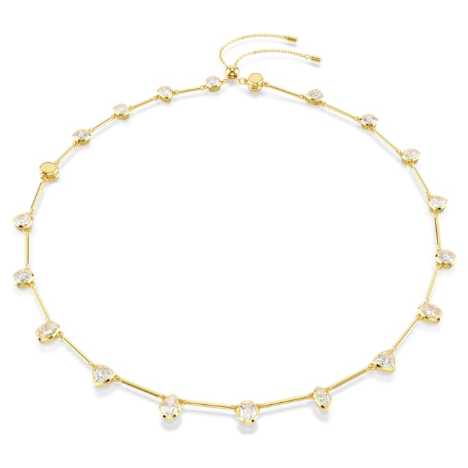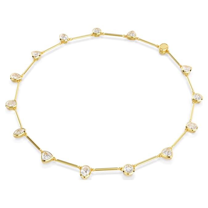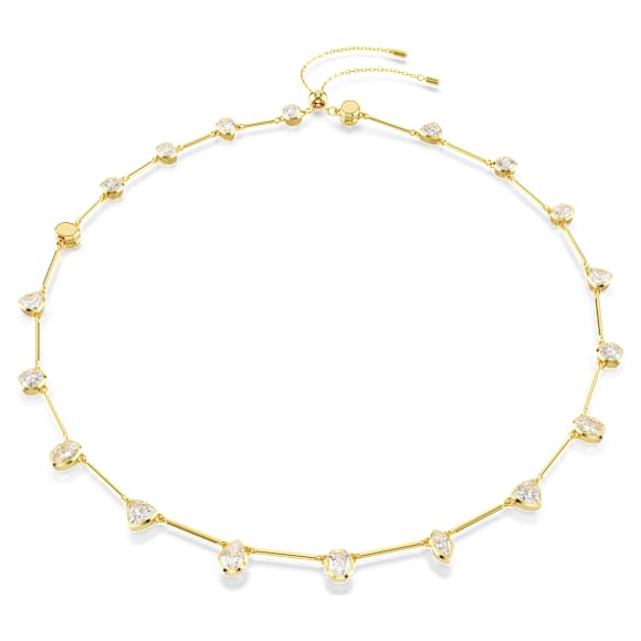 Ideal for layering, this versatile necklace from the Imber family is full of exquisite detail. The gold-tone plated creation is masterfully designed with a variety of Swarovski Zirconia in different shapes, each placed in a modern bezel setting. Offering sublime creativity, the hidden magnet closures also allow you to adapt the jewelry into a shorter necklace with a matching bracelet, complete with a sliding closure. Get playful with the many possibilities of this circular style and wear it to embolden your look.