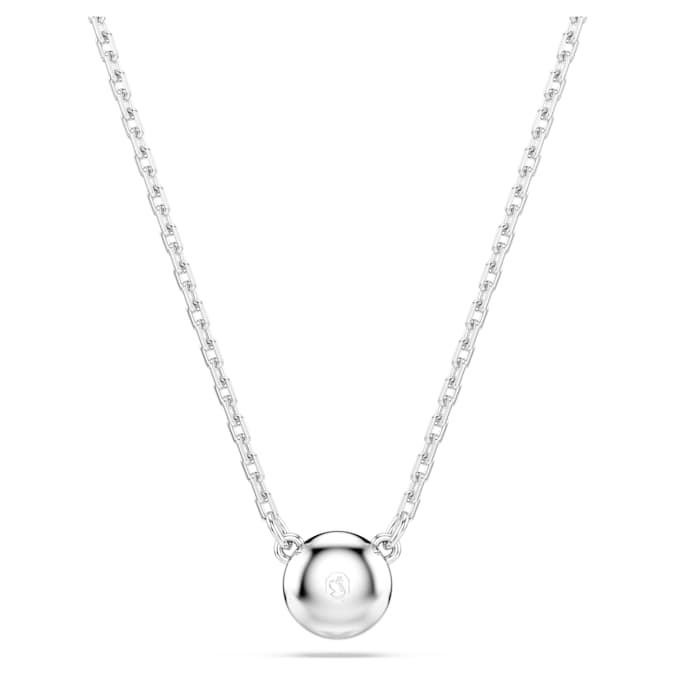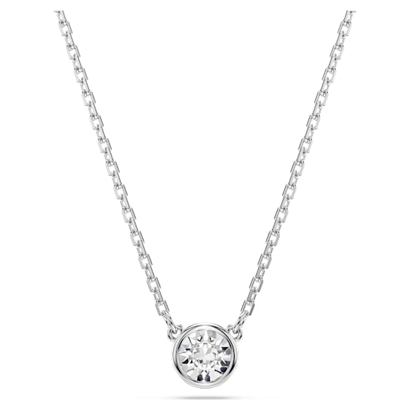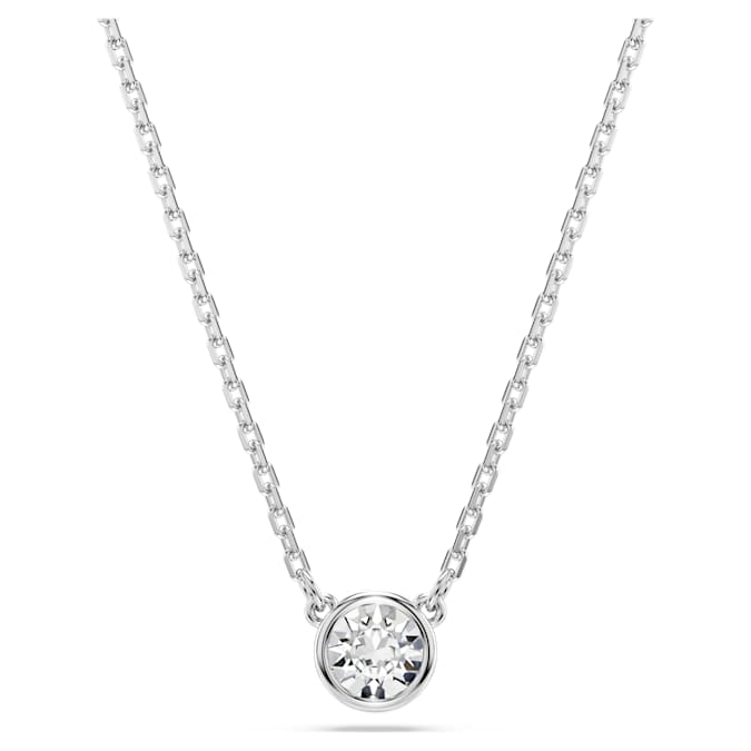 Effortless elegance is within reach thanks to this radiant Imber pendant. Suspended from a delicate chain with a lobster closure, the rhodium plated design features a central round-cut crystal in a puffy bezel setting. A single Swarovski Zirconia is also placed in the elongation for added radiance. Wear this piece to elevate your everyday style.