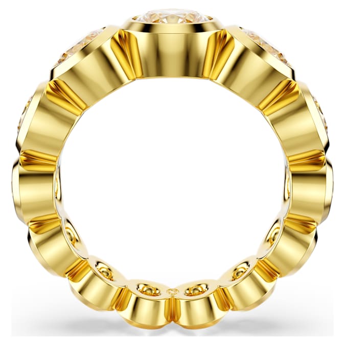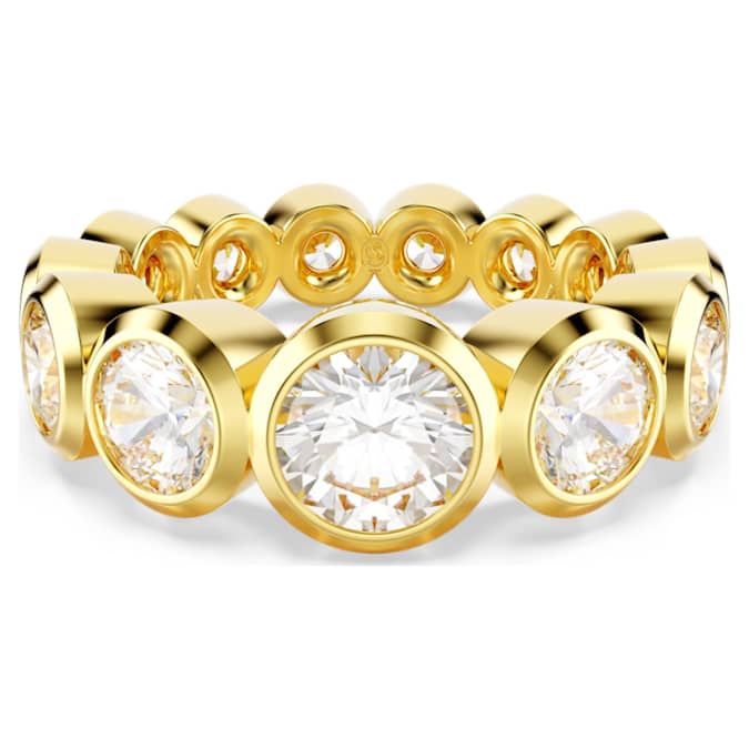 Ideal for day-to-night styling, this Imber ring is impressive at any hour. The gold-tone plated band is masterfully crafted with a full circle of round-cut Swarovski Zirconia, each placed in a modern bezel setting. The gradient of different sizes produces an eye-catching effect, along with a blaze of light from any angle. Wear this ring with a pair of matching earrings and let the sophistication shine.