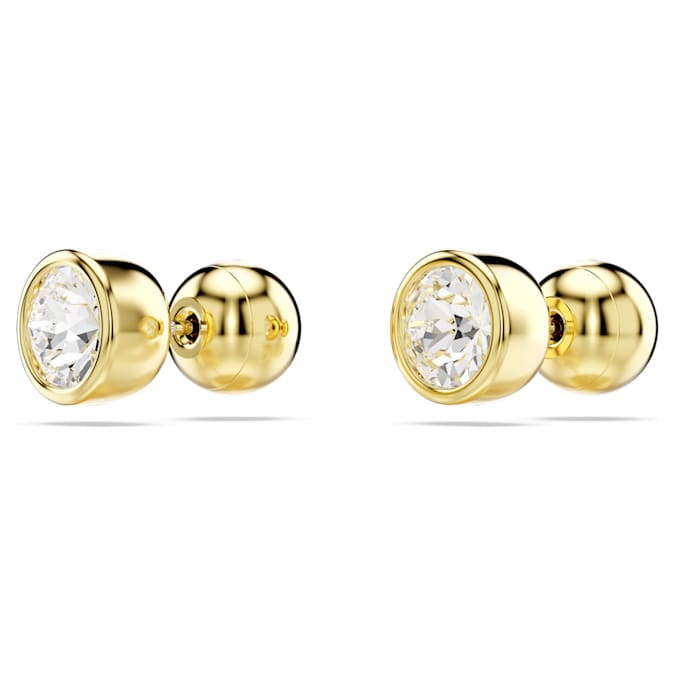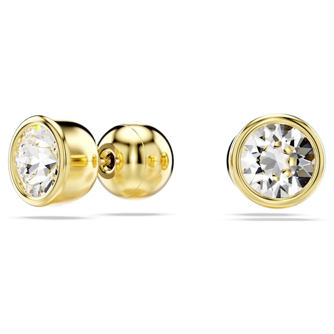 These simple pierced studs are a beautiful display of Swarovski’s expert faceting. Each gold-tone plated piece features a round-cut crystal in a puffy bezel setting. A super everyday choice that can easily be paired with a bracelet or necklace from the Imber family.