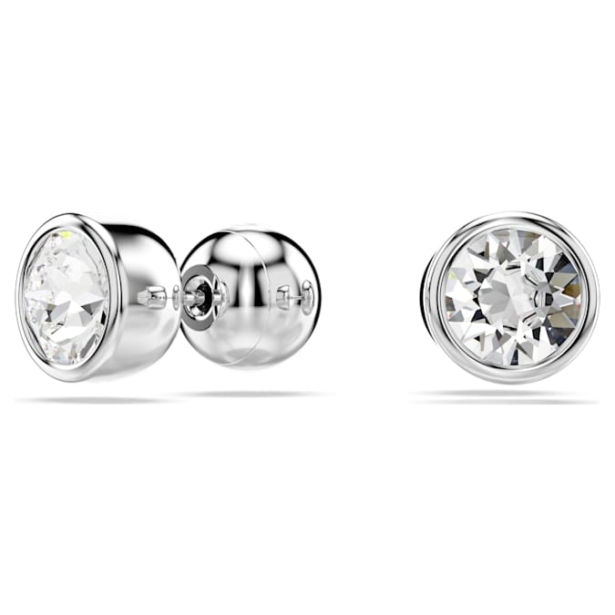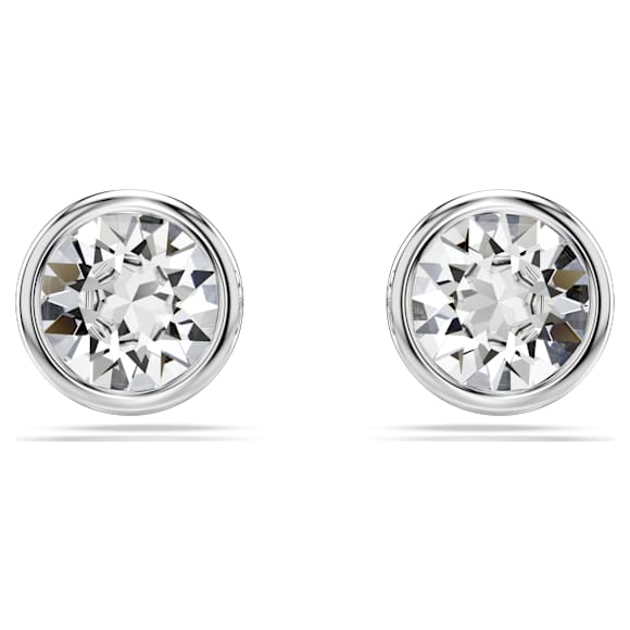 These refined pierced studs are a sublime example of Swarovski’s expert faceting. Each rhodium plated piece features a round-cut crystal in a puffy bezel setting. Pair with a bracelet or necklace from the Imber family to layer on light.