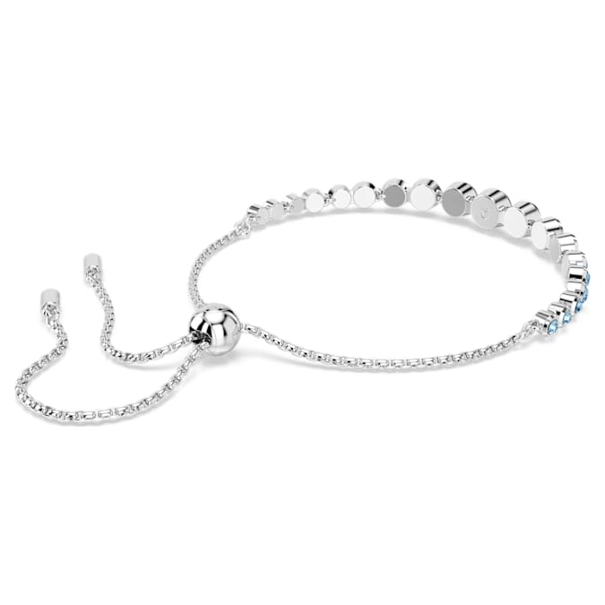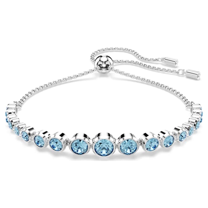 Made for everyday elegance, this rhodium plated bracelet exudes the simplicity of the Imber family. The design features a gradient of round-cut blue crystals, each placed in a modern bezel setting on a soft chain, with a sliding closure for easy wearability. Each delicate drop provides colorful sophistication for your wrist, giving you a go-to piece of jewelry that can be playfully stacked with other styles.