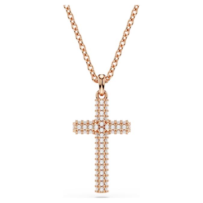 This symbolic pendant from the Insigne family is decorated with a full pavé of clear Swarovski Zirconia on its stylish cross-shaped design. Along with a lobster closure, the rose gold-tone plated chain is completed with an additional stone at the end of the elongation. An expressive piece of jewelry for yourself, or a perfect gift for a loved one.