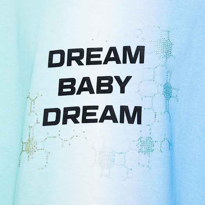 Combining ‘90s pastels with a fresh interpretation of our iconic octagon, Liberal Youth Ministry’s Dream Baby Dream T-shirt is effortlessly wearable. Whether paired with vintage denim or juxtaposed with a more formal piece in high-low style, the oversized silhouette of this limited release design provides the perfect canvas for degraded aquamarine, clear, and chrysolite crystals