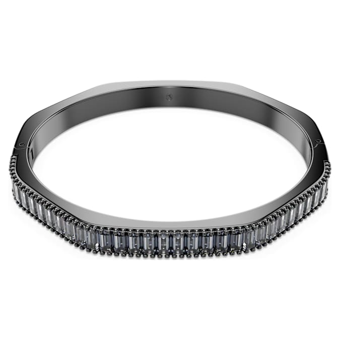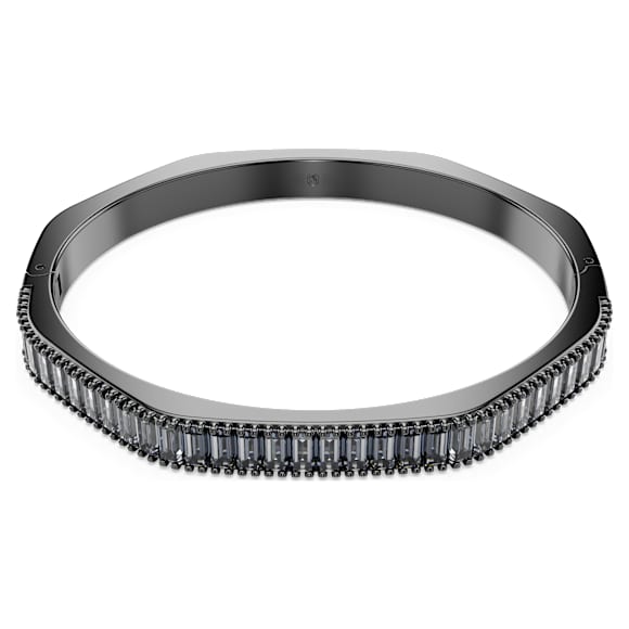 Ignite your everyday look with this intensely dazzling Matrix bangle. The ruthenium plated design is crafted in Swarovski’s emblematic octagon shape and is set with gray baguette-cut Swarovski Zirconia in a vertical setting. Perfect for stacking alongside matching Matrix bangles, it’s a full surround of deeply shaded style to express your most elegant self.