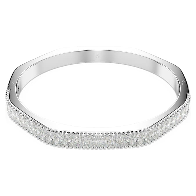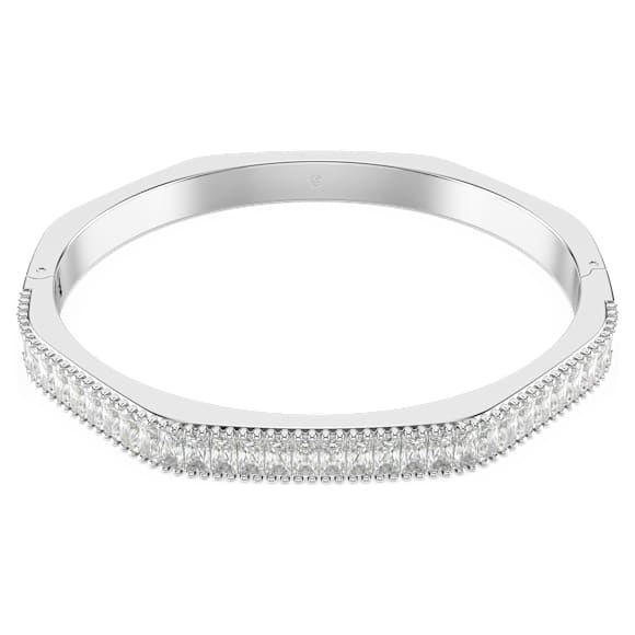 Ignite your everyday look with this hinged Matrix bangle. The rhodium plated design is crafted in Swarovski’s emblematic octagon shape and is beautifully adorned with clear baguette-cut Swarovski Zirconia in a vertical setting. Perfect for stacking alongside matching Matrix bangles, it’s a full surround of radiance to express your most elegant self.