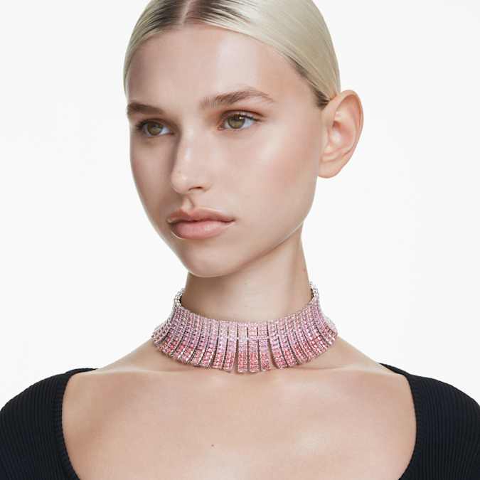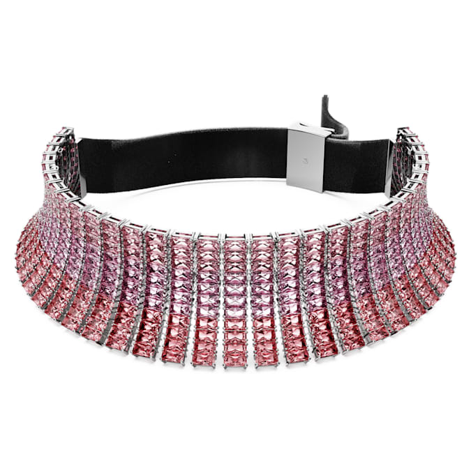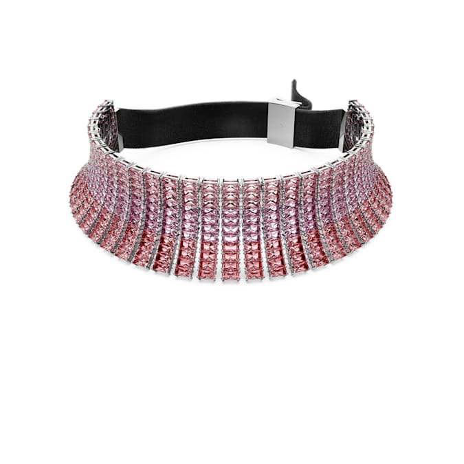 Bright, colorful, and truly unforgettable. This statement choker from the Matrix family was born for radiant self-expression. The rhodium plated design features a concave shape, which wraps around the neck with rows of baguette-cut Swarovski Zirconia in multiple pink tones. A perfect example of Swarovski’s expert savoir-faire that will layer your look with extravagant joy.