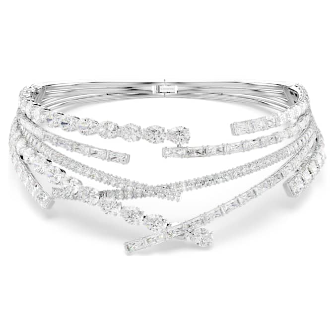 A classic example of Swarovski savoir-faire, this stunning choker is the ultimate way to bring glamour into your style. The sleek and modern design is rhodium plated and features a foldover clasp for a comfortable and secure fit. To create a look of scintillating radiance, five different cuts of Swarovski Zirconia are used to adorn the choker’s strands, adding even more drama to the light-catching appearance. Wear this jewelry with the matching bangle and earrings for a look of pure sophistication.