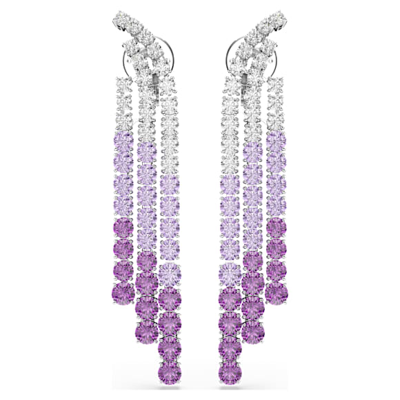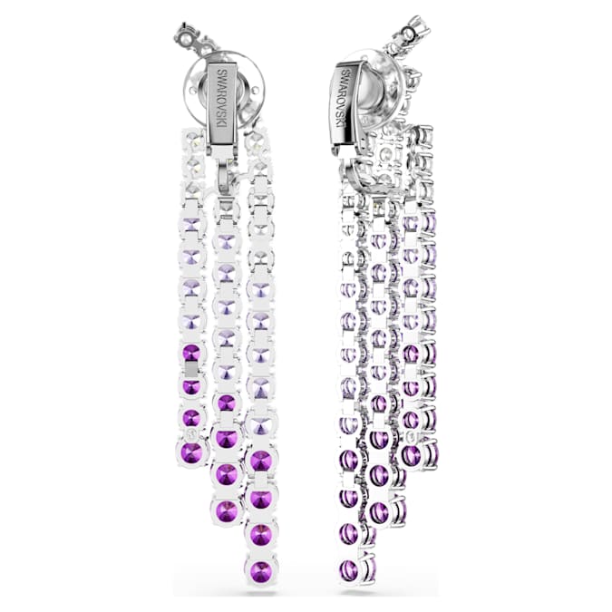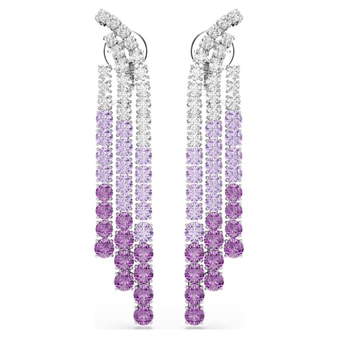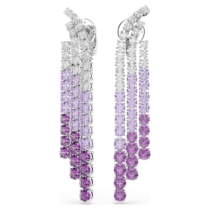Celebrate your individuality with these colorful and fearless clip earrings. Each joyful piece is rhodium plated and features three long strands of round-cut Swarovski Zirconia in a gradient of purple and clear tones. A showcase of artistry and imagination that was born for the spotlight.