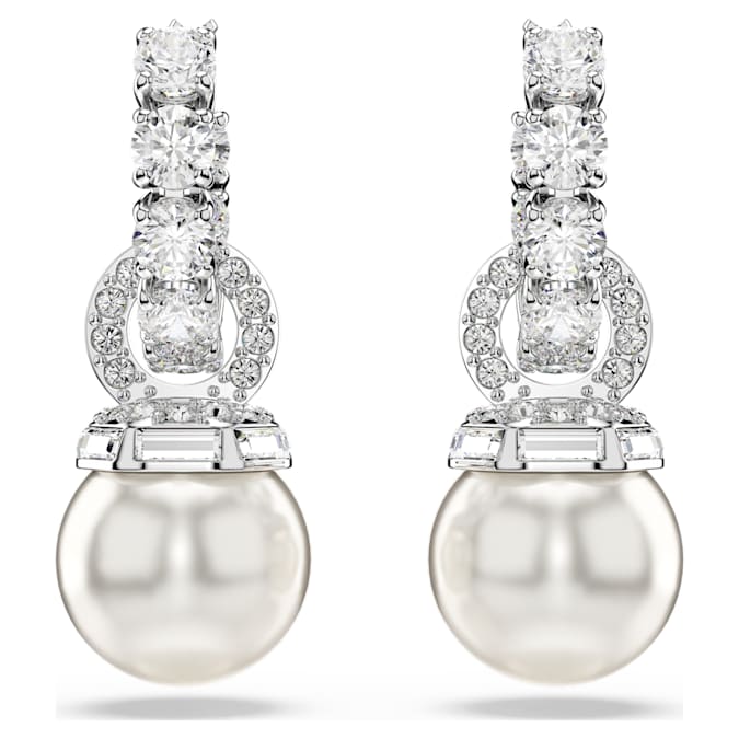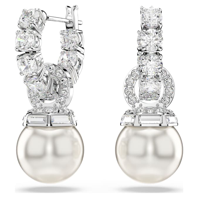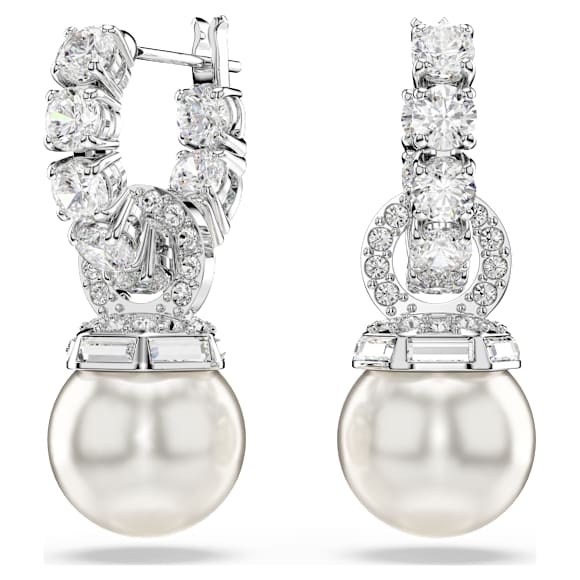 Amplify the elegance in your style with these Matrix pierced earrings. The rhodium plated pieces feature tennis hoops and connecting rings that are embellished with dazzling pavé, while the Swarovski Crystal Pearls add a classic touch of pure refinement. It’s the reimagination of a timeless look that you can wear for almost any occasion.