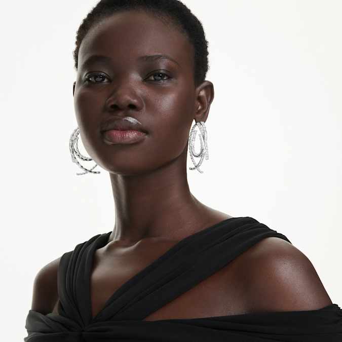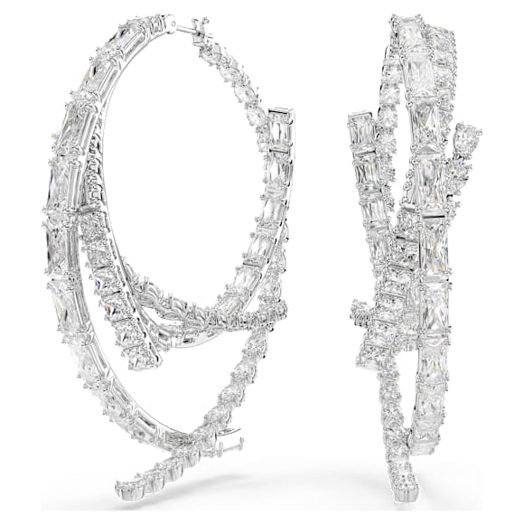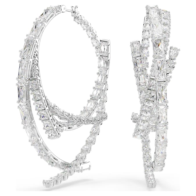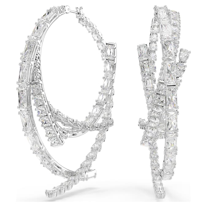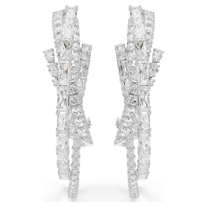 Give your hoop style an extravagant upgrade with these head-turning earrings. Each bold piece is designed to make a statement and features different cuts of Swarovski Zirconia, all set within a sleek and reflective rhodium plated finish. A captivating way to dial up your glamour, these earrings can be paired with a matching bangle or choker.