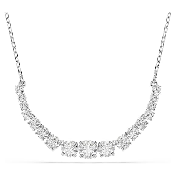 Embrace a pure expression of elegance with this radiant Matrix necklace. The rhodium plated design features a delicate chain, adorned in a gradient of round-cut Swarovski Zirconia, each faceted for light-reflecting wonder. Enhance the look of luxury by pairing this necklace with a set of matching earrings or a bracelet.