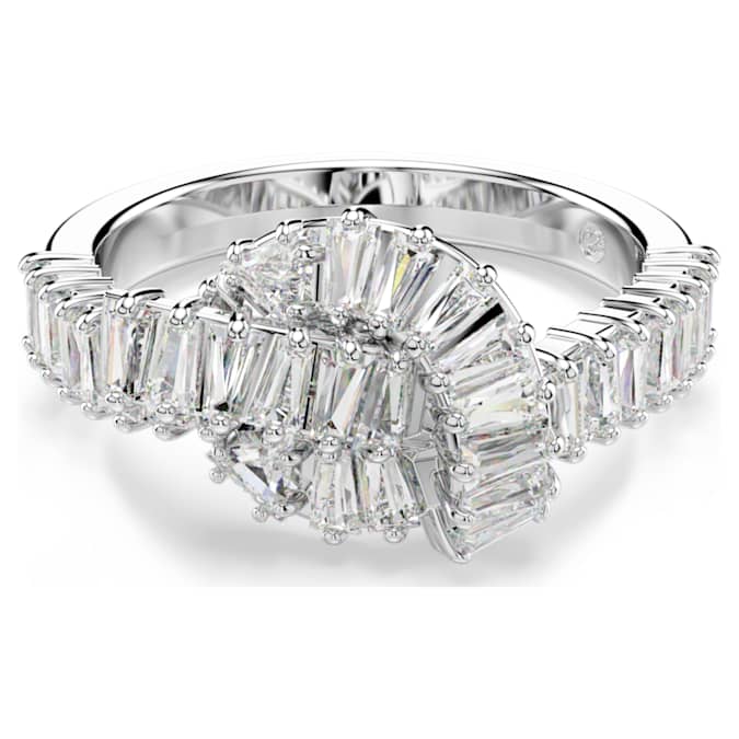 Give your style a light-catching twist with this elegant Matrix ring. Crafted with a ribbon-like knot, the rhodium plated design features a sophisticated adornment of baguette-cut Swarovski Zirconia, each placed in a prong setting. Modern and artistic, this ring pairs perfectly with other pieces of jewelry from the same family.