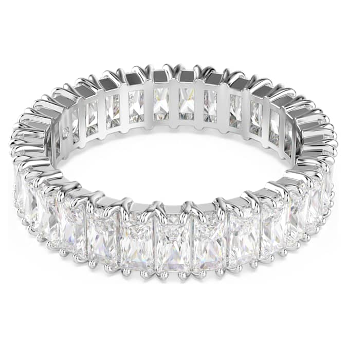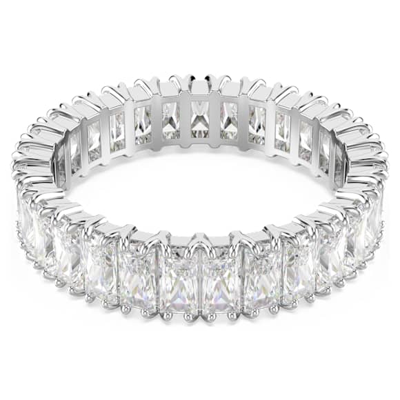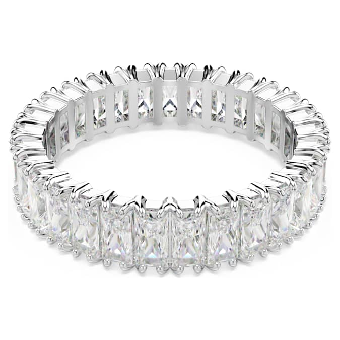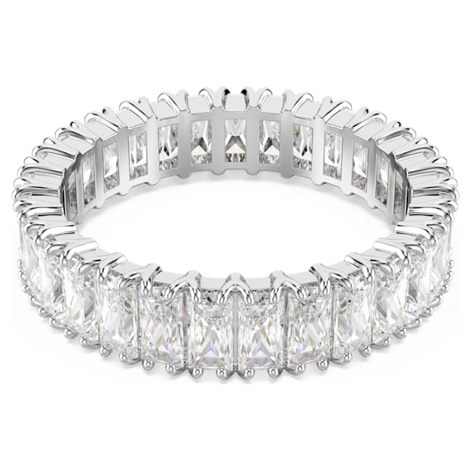 No jewelry collection is complete without a radiant band ring. This silver-tone finish design features a full surround of baguette-cut Swarovski Zirconia, each placed within a refined prong setting. A sensational piece to wear solo or stacked with similarly dazzling rings from the Matrix family.