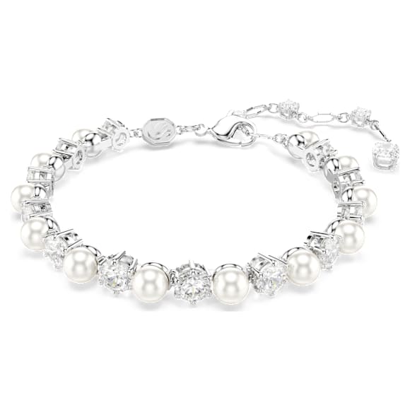 Matrix Tennis bracelet Crystal pearl, Round cut, White, Rhodium plated