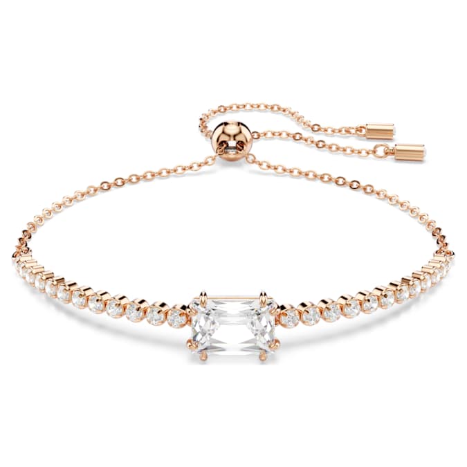 This classic Tennis bracelets adds a touch of radiance to any look. Fastened with a sliding closure for an adjustable fit, the rose gold-tone plated design features a uniform row of Swarovski Zirconia and is accented with a baguette-cut Swarovski Zirconia at its center. A vibrant twist on a timeless style that you can wear time and time again.