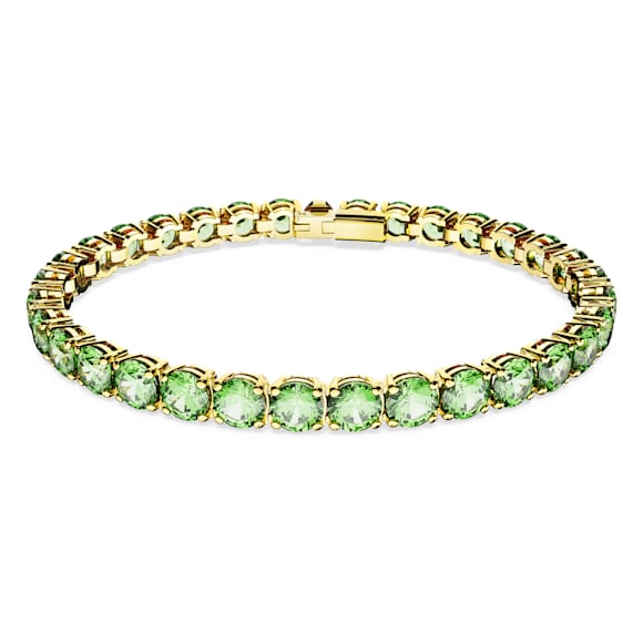 Embracing the contemporary fluidity of the Matrix Tennis family, this glittering bracelet surrounds your wrist in vibrant light-reflecting color. Round green stones are set in gold-tone plating in sleek uniformity, giving you a piece of jewelry that is striking enough to be worn alone, and simple enough to be styled with other pieces.