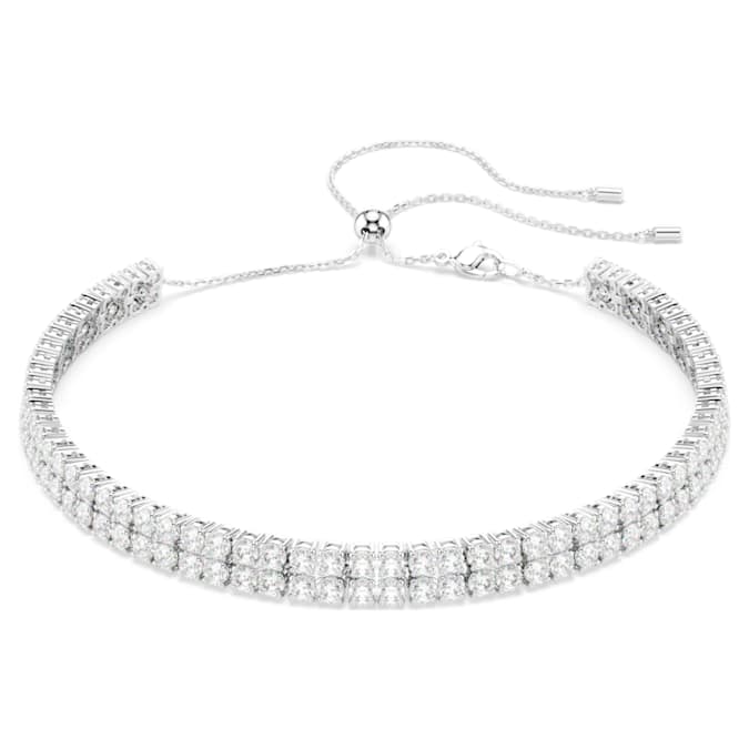 Showcasing Swarovski’s mastery of light, this exquisite choker is a true statement of elegance. The rhodium plated design features two rows of prong-set Swarovski Zirconia in round cuts. A sliding ball closure allows you to easily adjust the jewelry to your size. Embrace a look of all-over luxury by wearing this choker alongside a matching Matrix Tennis bracelet.
