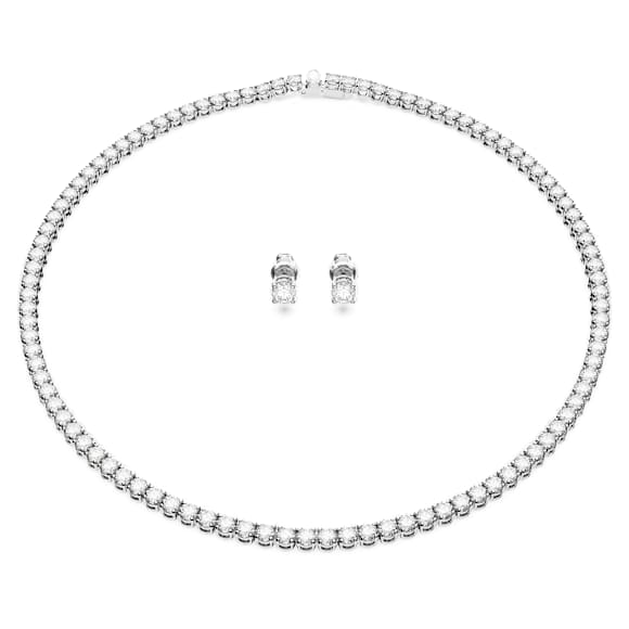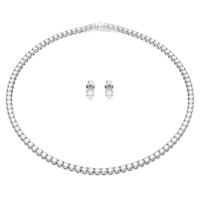 This perfectly matched set ensures that your overall look is expressed in total harmony. It includes an all-round necklace, featuring a string of shimmering clear stones and a refined closure, as well as a pair of delicate stud earrings. For an everyday combination or a simple touch of beauty on a night out, this is an assured choice.