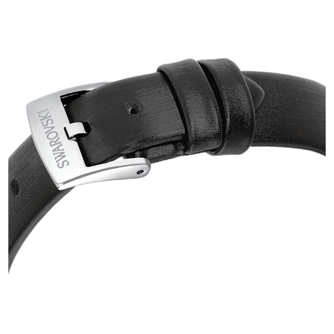 Echoing the iconic form of Swarovski’s Matrix Tennis jewelry, this watch makes its own elegant impression with crystals. The 30-mm stainless steel design features a pavé of 30 clear crystals on the bezel, while the sunray dial is further accented with crystals for the hour markers and includes a swan logo at 12 o’clock. Around the wrist, comfort is provided by the black leather strap, which includes satin finishing and a quick-release system. This Swiss made watch is water resistant to 50 meters and is completed with a single crystal placed in the crown. Wear it alongside jewelry from the Matrix Tennis family for a seamless overall look.
