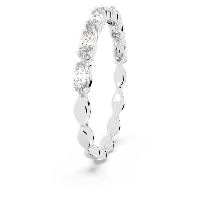 Balance minimalism and luxury with this gorgeous ring. The front half is embellished with sparkling marquise-shaped stones, making this rhodium-plated accessory a lovely accent for everyday looks. Stacks beautifully or looks equally good worn alone.