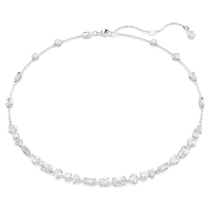 This dazzling Mesmera necklace will add chic refinement to your style. To create the exquisite effect, the rhodium plated design features intricate clusters of stones in different cuts and sizes around the front, and delicate scattered stones around the back. A single Swarovski Zirconia adorns the end of the elongation for extra luxury. Gift this to a loved one and watch their eyes light up.