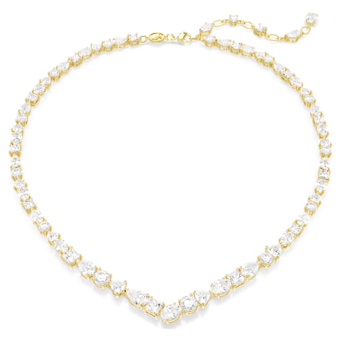 Embrace the pure refinement of this striking Mesmera necklace. The luminous design is made with a string of eye-catching Swarovski Zirconia on a gold-tone plated setting in a surprising mix of cuts and sizes. For extra luxury, the elongation is completed with a lobster closure and a scattering of Swarovski Zirconia. Gift this to a loved one as a style to be worn again and again.