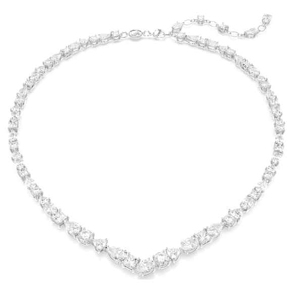 Embrace the pure refinement of this dazzling Mesmera necklace. The luminous design is made with a string of eye-catching Swarovski Zirconia on a rhodium plating setting in a surprising mix of cuts and sizes. For extra luxury, the elongation is completed with a lobster closure and a scattering of striking Swarovski Zirconia. Gift this to a loved one for a style to be worn again and again.