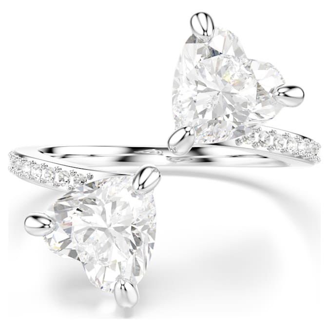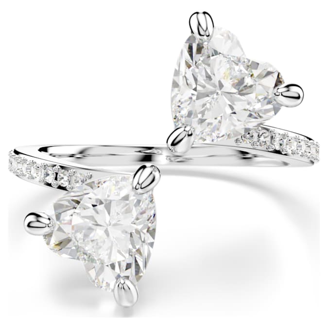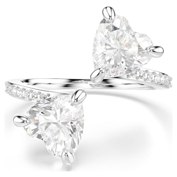 This silver-tone finish Swarovski ring is inspired by the idea of two hearts meeting. It captures the spirit of romance with two heart-shaped, finely cut stones meeting in the middle. The glittering white of the hearts is all the more accentuated by a simple, yet elegant design. Its timeless symbolism makes this Swarovski ring the perfect gift for a special loved one.