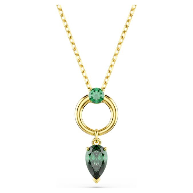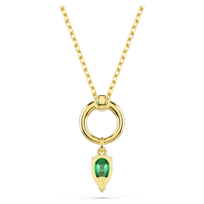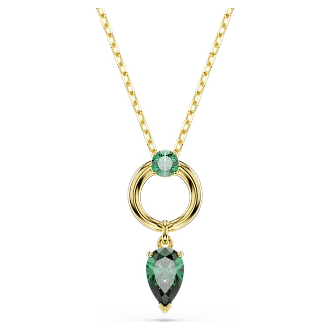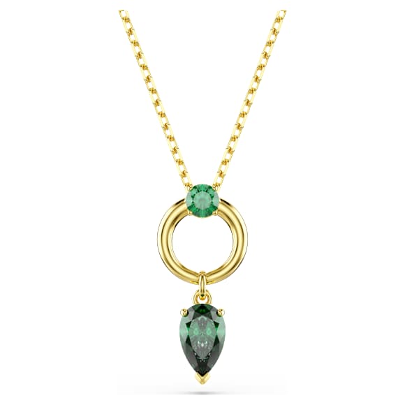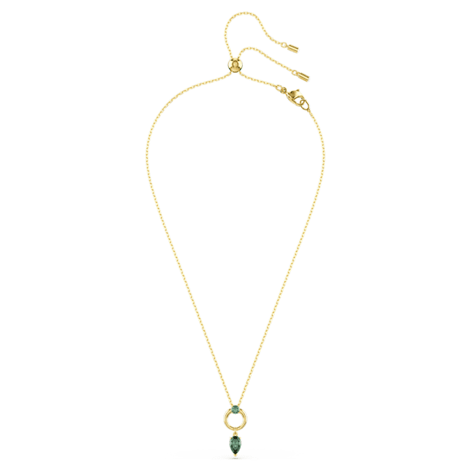 This Mesmera pendant blends color with refinement to create an eye-catching everyday piece of jewelry. The shimmering motif features a pear-cut Swarovski Zirconia in green, which is attached to a luxurious gold-tone plated hoop. An additional round-cut Swarovski Zirconia is placed at the center, while a sliding mechanism on the chain allows the pendant to be easily adjusted to your desired length.