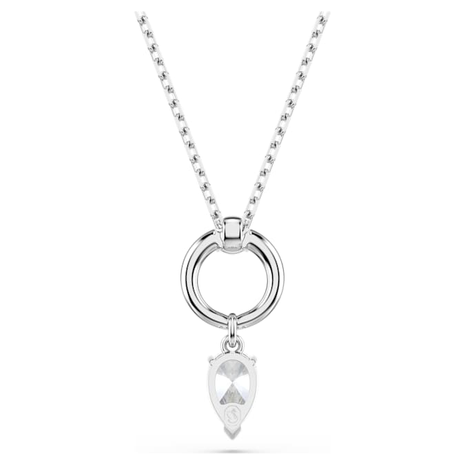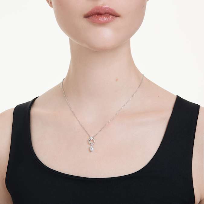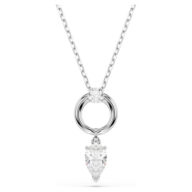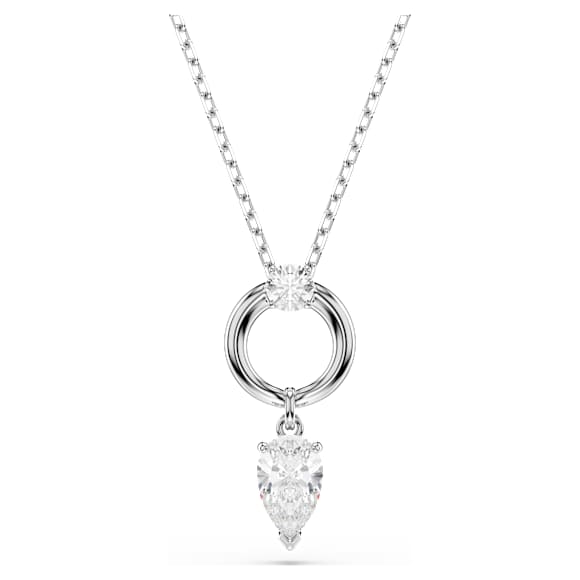This Mesmera pendant blends radiance with refinement to create an eye-catching everyday piece of jewelry. The shimmering motif features a pear-cut Swarovski Zirconia, which is attached to a luxurious rhodium plated hoop. An additional round-cut Swarovski Zirconia is placed at the center, while a sliding mechanism on the chain allows the pendant to be easily adjusted to your desired length. Wear it with the matching earrings to create your own stunning set.