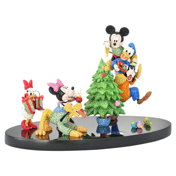 Bring color and cheer to the holidays with this sensational Mickey & Friends Holiday Cheer Limited Edition. The festive and joyful scene features beloved characters inspired by Disney’s Mickey and Minnie Mouse, Donald and Daisy Duck, Goofy, and Pluto dressed in holiday sweaters as they decorate their tree. The piece is detailed with approximately41,200 hand-set crystals using Swarovski’s patented Pointiage technique, and took over 340 hours of expert craftsmanship to complete, before being placed on a black granite base. Limited to just 200 pieces, this magical design is a must-have collectible for passionate Disney fans. Decoration object. Not a toy. Not suitable for children under 15.