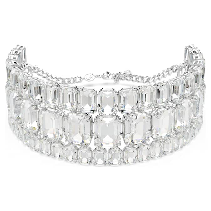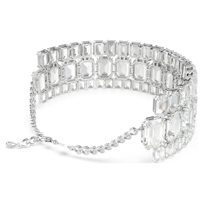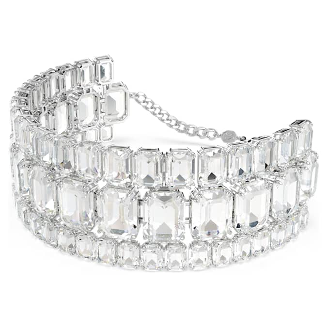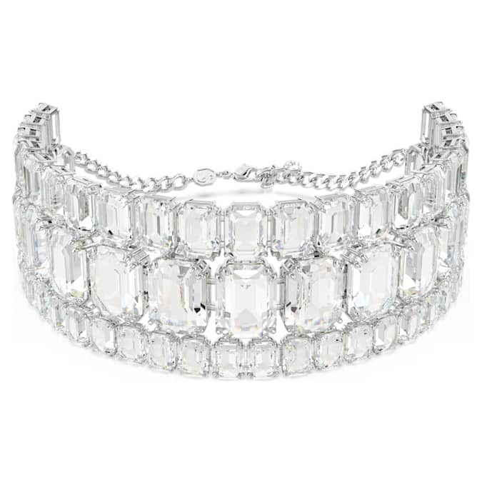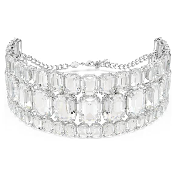 Empower your everyday style with this stunning Millenia choker. A glittering statement piece, the design is crafted with rhodium plating and features three radiant rows of clear octagon-cut crystals in varying sizes. This showstopping design is ideal for day-to-night fashion and a spectacular example of Swarovski’s mastery of light.