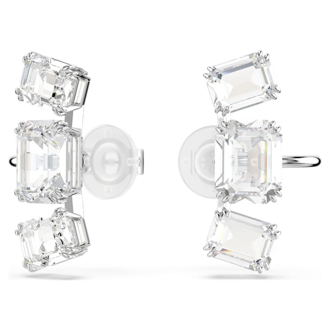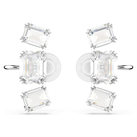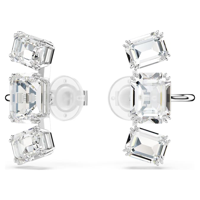 Get the Millenia glow with these light-filled clip earrings. Each rhodium plated piece features a trio of clear octagon-cut crystals, each arranged in both vertical and horizontal settings. The perfect way to infuse your look with radiance.